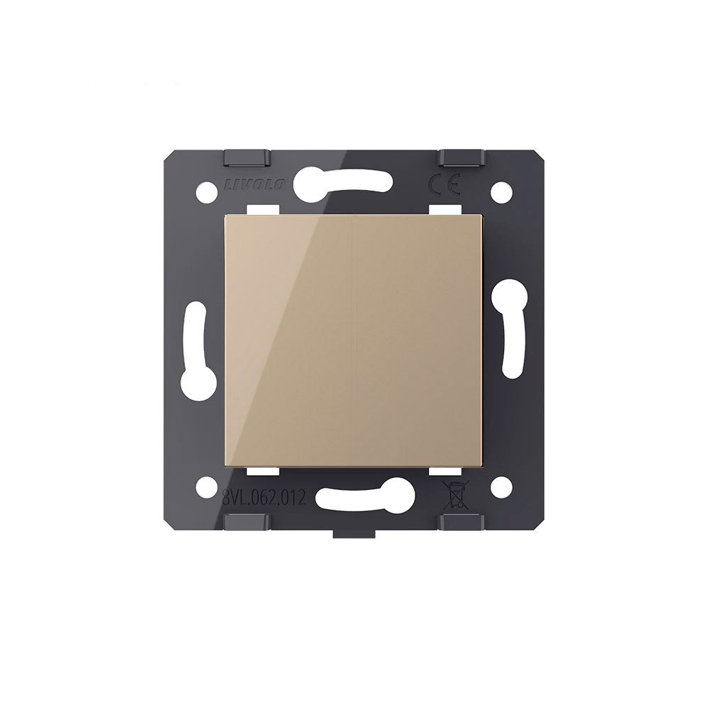 Mecanismo de empotrar EU, interruptor de cruzamiento. Con tecla de color dorado. NO INCLUYE marco metálico ni panel frontal de cristal. (el marco frontal de cristal incluye el marco metálico) Sirve para encender y apagar la luz desde tres lugares diferentes. Por ejemplo, un pasillo, donde tienes un mecanismo en la entrada, otro en la parte media del pasillo y otro al final. Se combina con dos interruptores-conmutadores.