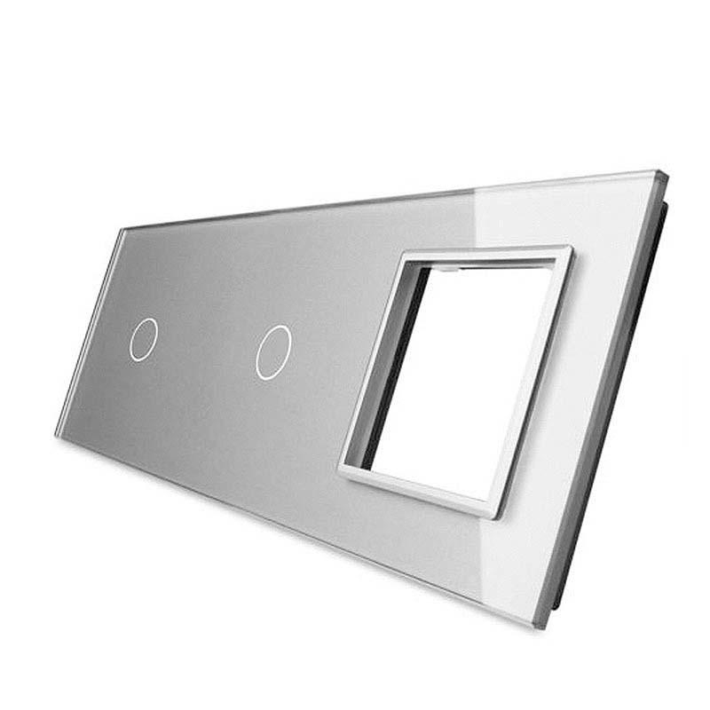 Frontal de cristal templado de 3 módulos con 1 hueco + 2 botones, color gris.