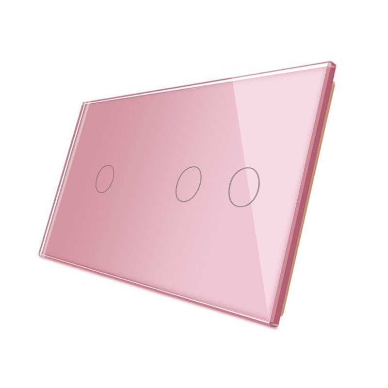 Frontal de cristal templado de 2 módulo + 3 botones, color rosa