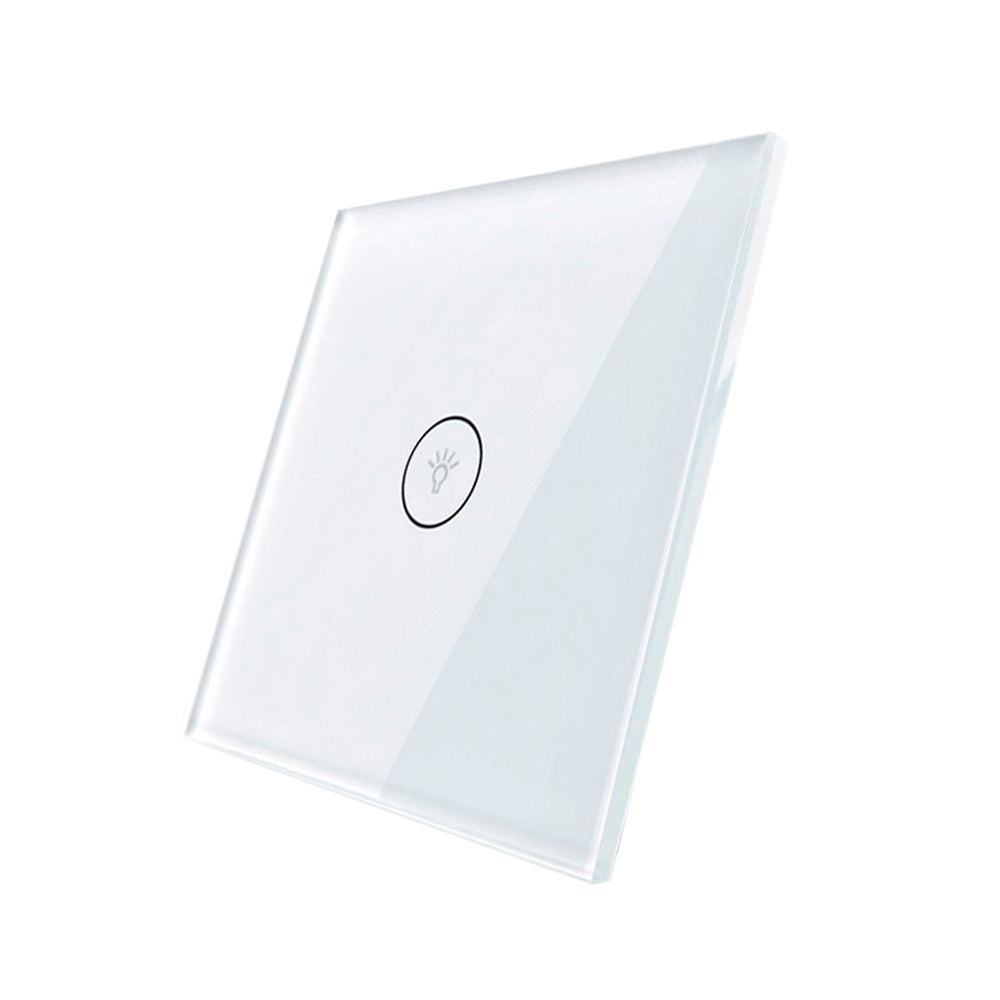 Frontal de cristal templado de 1 módulo + 1 botón, color blanco. Para interruptor táctil Wifi-Voz