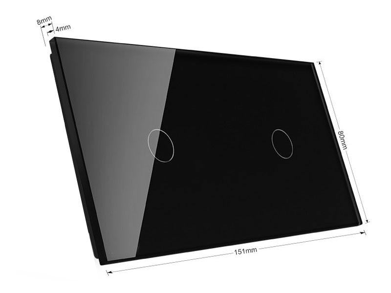Frontal de cristal templado de 2 módulos + 2 botones, color negro