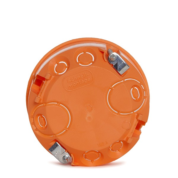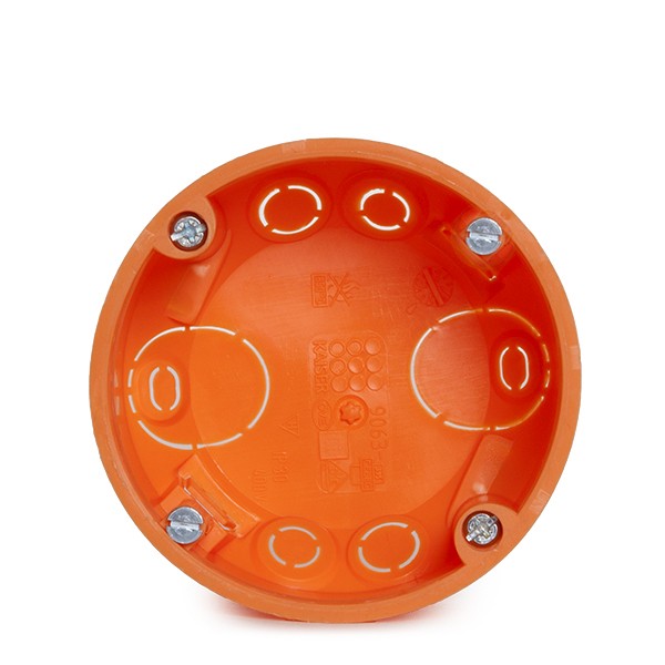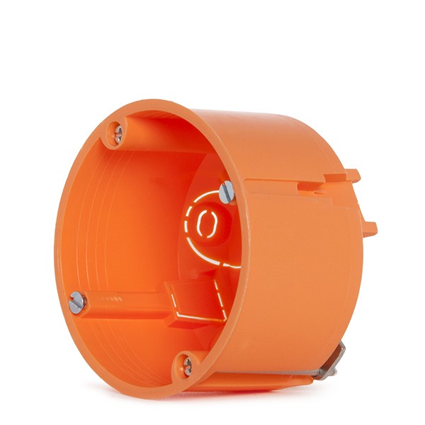 La Caja de Instalación de 1 elemento está diseñada para una amplia cantidad de instalaciones de dispositivos asegurando una adecuación óptima de espacio para todo tipo de aparatos.Ideal para instalación en láminas de 7 a 40mm de espesor. Su construcción permite la instalación sencilla para usos tanto comerciales como industriales dependiendo del uso que se requiera.Para su instalación se hace un agujero en la lámina de 68mm, se cortan los puntos de entrada requeridos, se instalan los cables o conduits y luego se ajusta la caja a la lámina por medio de los tornillos de fijación.Posee 2 tornillos para sujeción de aparatos, 2 entradas de 20mm de diámetro, 2 entradas de cable 3x2,5mm² y 2 entradas de cable 3x1,5mm². Acabado color naranja.