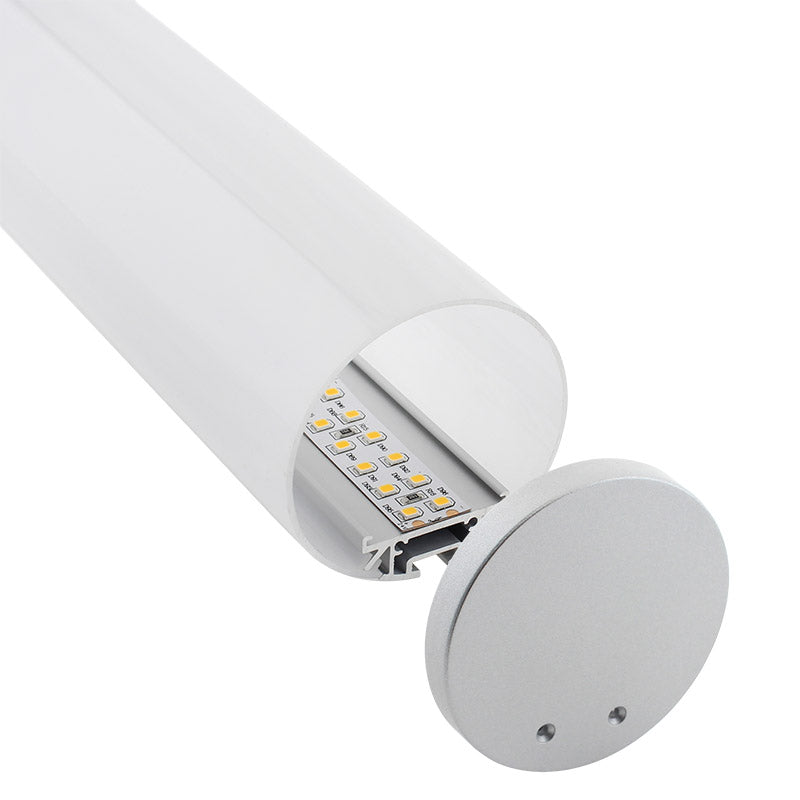 Luminaria colgante minimalista realizada en aluminio anodizado silver y difusor opal.