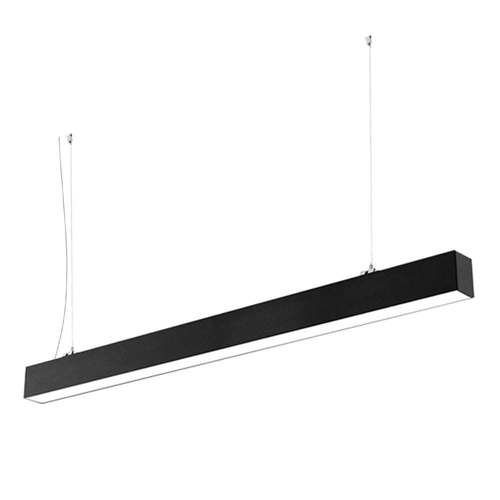 Luminaria de suspensión lineal lacado en color negro y con chip led Philips Lumiled y una longitud de 120cm que ofrece una iluminación general a través del difusor de policarbonato opal que crea un ambiente perfecto para cualquier estancia. Incluye accesorios para su instalación suspendida o en superficie.