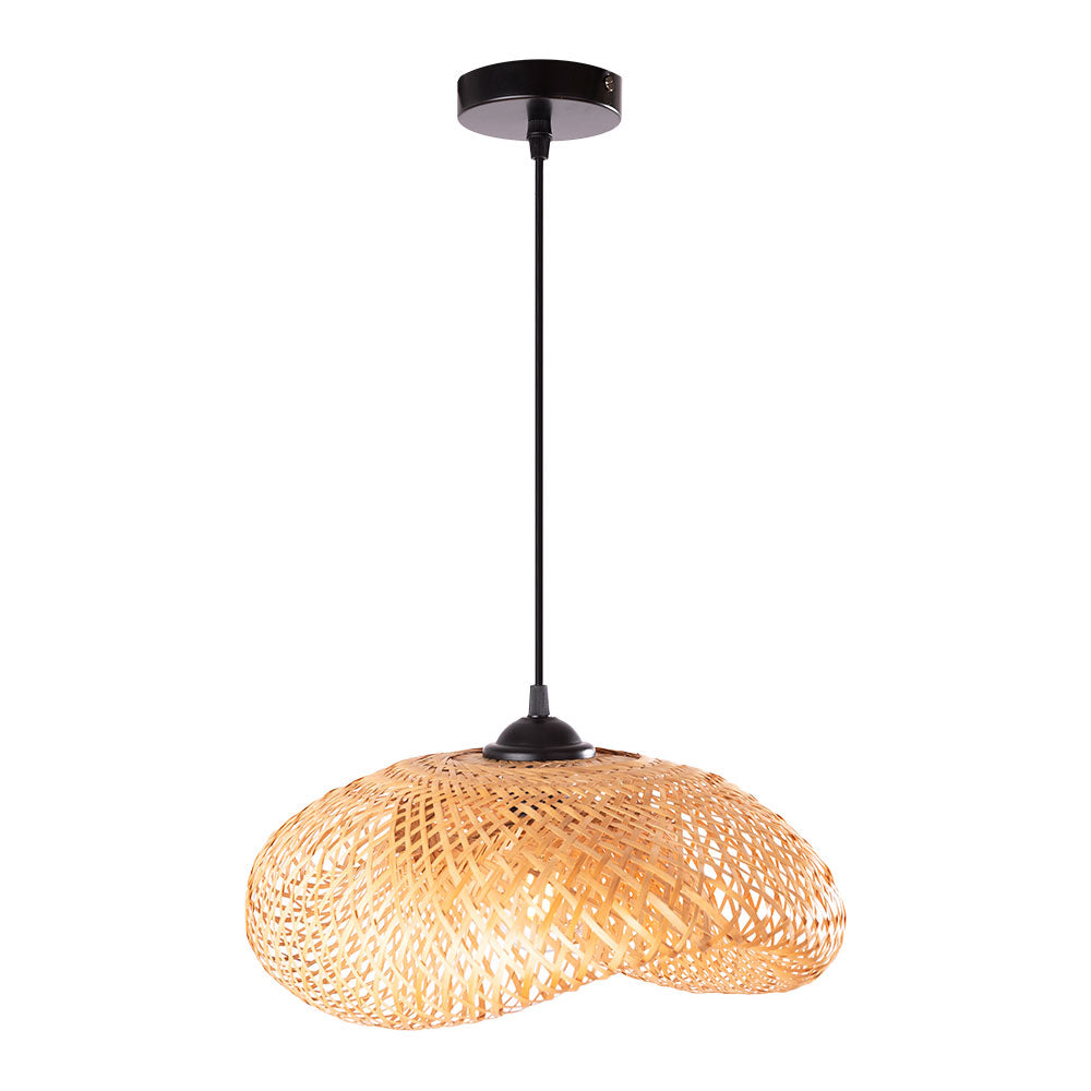 La lámpara colgante "Anthony" es una preciosa lámpara hecha con un entramado de tiras de ratán. Una opción original que no pasará desapercibida en decoraciones cálidas.  Apuesta por un diseño vintage o clásico, Lámpara elegante y desenfadada, fabricada a mano con malla ovalada irregular de ratán. Eso permite el paso indirecto de la luz hacia el exterior y evita el deslumbramiento. La lámpara colgante “Anthony” presenta una instalación muy fácil, el centro de la lámpara aloja un portalámparas para bombilla LED E27. Recomendamos utilizar una bombilla LED de filamento para iluminación cálida en ambiente vintage y con decoración predominante de elementos en color madera.