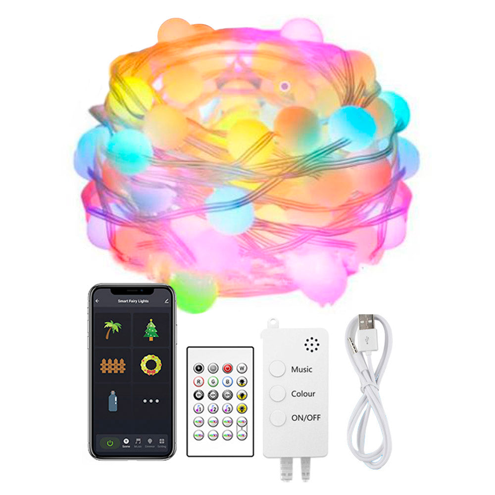 Kit guirnalda DC5V, 66 led-globo, 10m, RGB, WiFi + Bluetooth, RGB