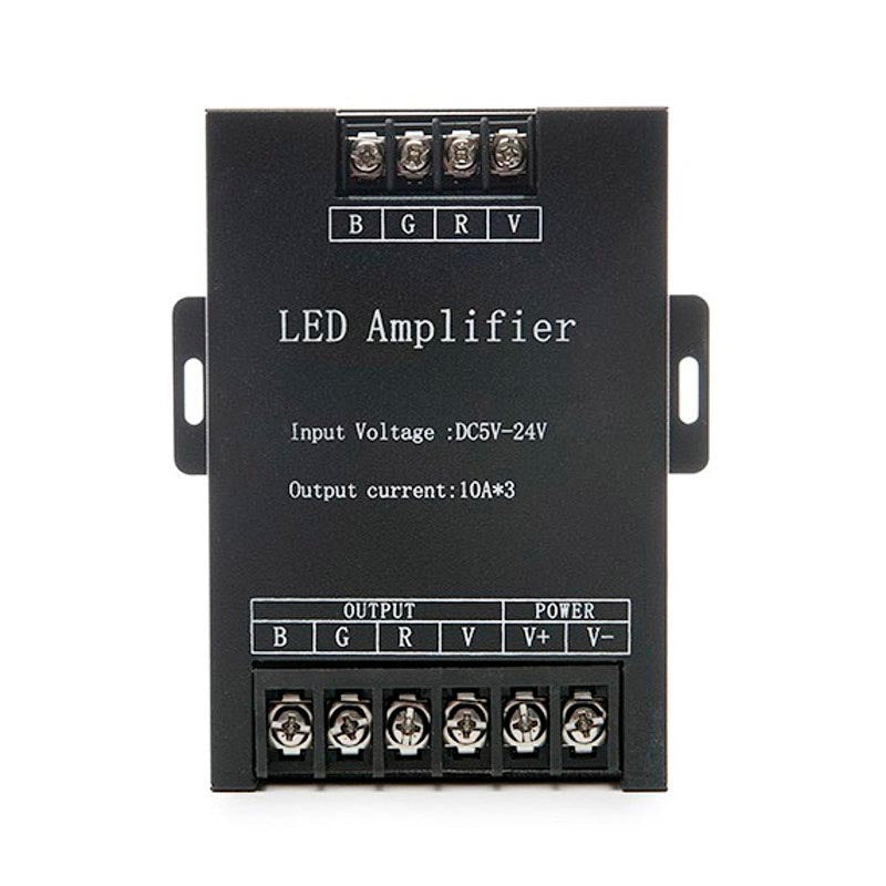 El amplificador RGB Pixel LED permite prolongar la longitud de metros lineales que se pueden instalar, logrando efectos mucho más homogéneos y a mayores distancias, sin necesidad de un tendido paralelo de cables.