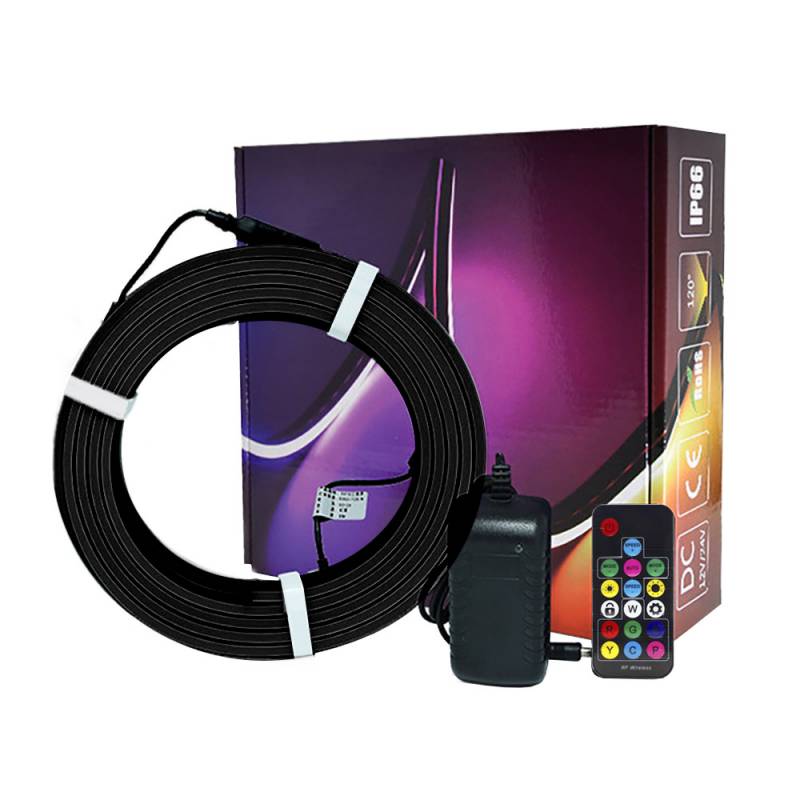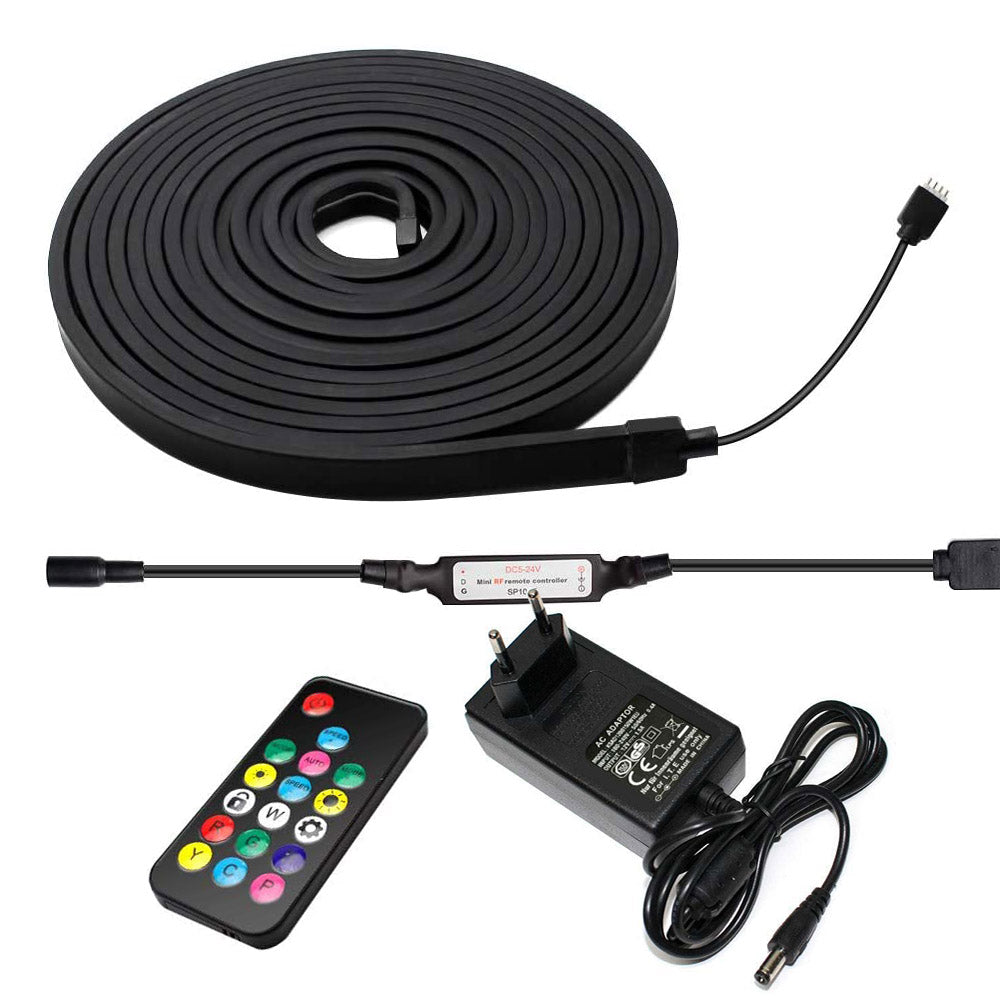 El nuevo NEON flex negro con tira IC RGB digital es un nuevo concepto de iluminación digital con nuevas posibilidades de configuración que permite configurar cada led de un color de forma independiente. Realiza efectos de colores con los 256 colores que soporta cada LED.