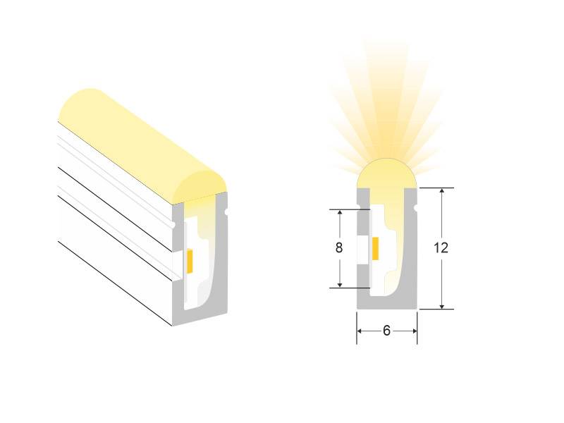 NEON Flex monocolor en Tubo de silicona de máxima calidad y perfecta difusión de la luz. Con múltiples ventajas sobre los tradicionales NEON de PVC. Ideal para decoración, perfilar con luz, rotulación, interiorismo, etc. Se pueden realizar cortes cada 2,5cm