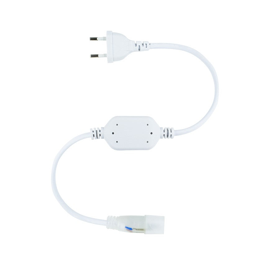 El cable rectificador permite conectar de manera directa la manguera de Neón Circular LED Flexible monocolor a la red eléctrica de 220V, sin necesidad de transformadores ni ningún otro dispositivo adicional.