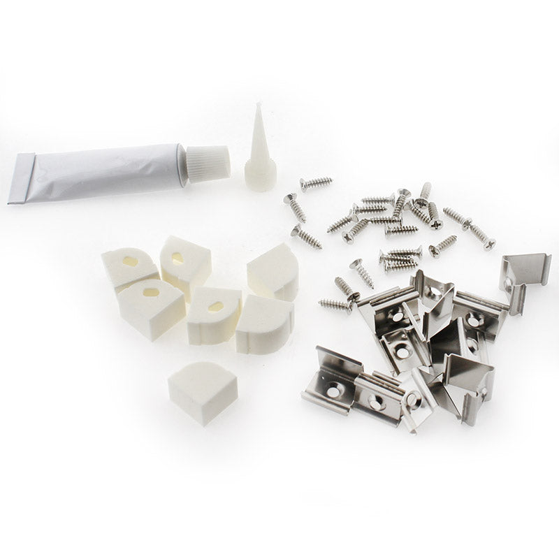 Incluye: Tubo de silicona sellador, 10 clips de fijación con tornillos y 10 tapas finales.