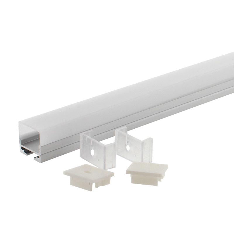 Kit que incluye perfil de aluminio ALKAL, cubierta opal y tapas laterales. Para proteger y ocultar las tiras led, lo que permite realizar instalaciones profesionales, limpias y con estilo.