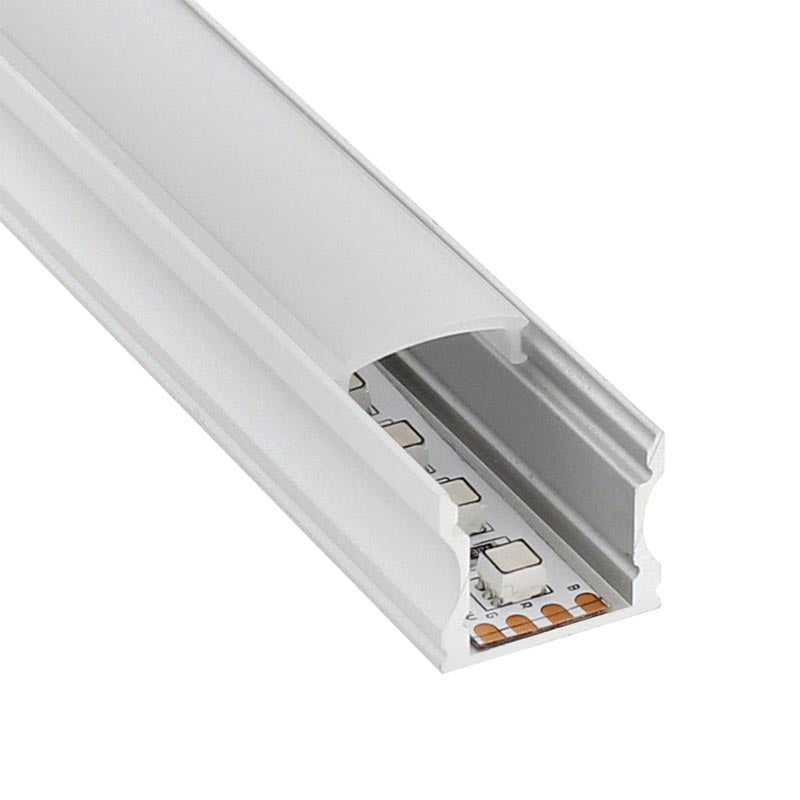 Kit que incluye perfil de aluminio anodizado de 2 metros, cubierta opal y tapas laterales.
