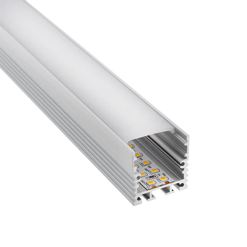 Kit que incluye perfil de aluminio anodizado de 2 metros, cubierta opal y tapas laterales.