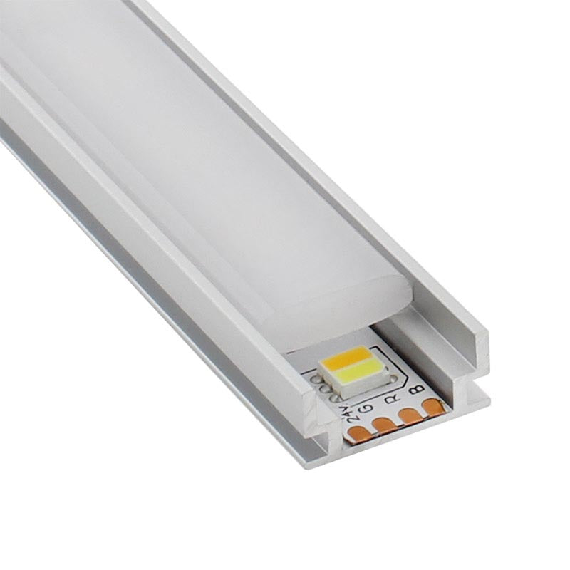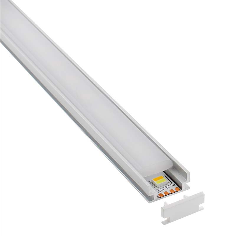 Kit que incluye perfil de aluminio anodizado de 1 metro, cubierta opal transotable y tapas laterales.