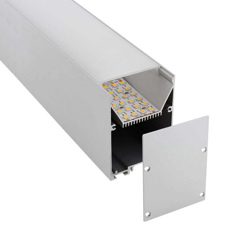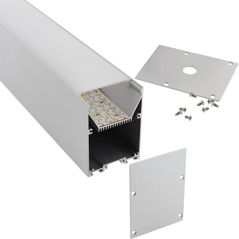 Kit que incluye perfil de aluminio anodizado de 2 metros, la cubierta opal y tapas laterales.