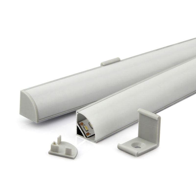 Kit que incluye perfil de aluminio KORK mini lacado en color blanco, cubierta opal, tapas y clips de sujección. Para proteger y ocultar las tiras led, lo que permite realizar instalaciones profesionales, limpias y con estilo.