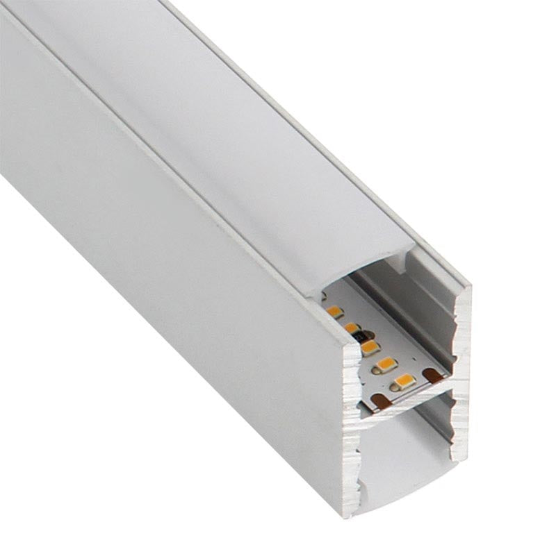Kit que incluye perfil de aluminio anodizado de 1 metro KEN, cubiertas opal y tapas laterales.
