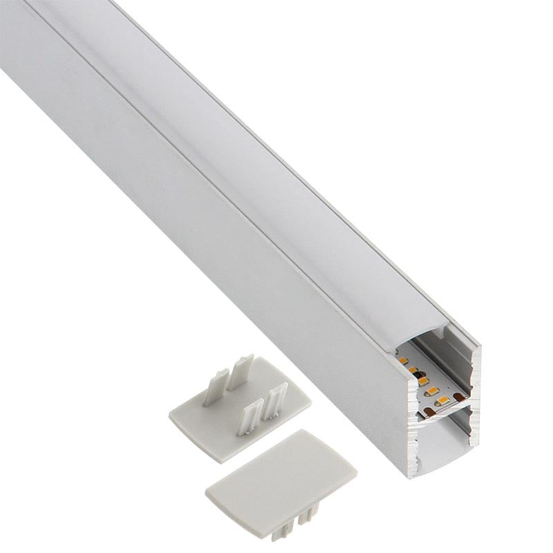 Kit que incluye perfil de aluminio anodizado de 2 metros KEN, cubiertas opal y tapas laterales.