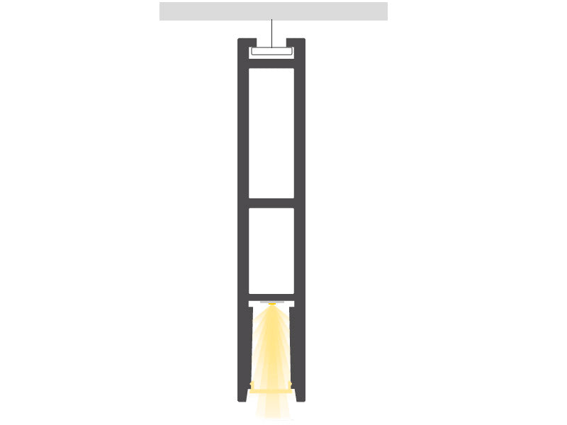 Perfil de aluminio lacado en color negro mate de 1 metro de longitud para instalaciones profesionales. Con el nuevo perfil PHANTER se consiguen impresionantes composiciones en iluminación suspendida que realzan cualquier espacio.