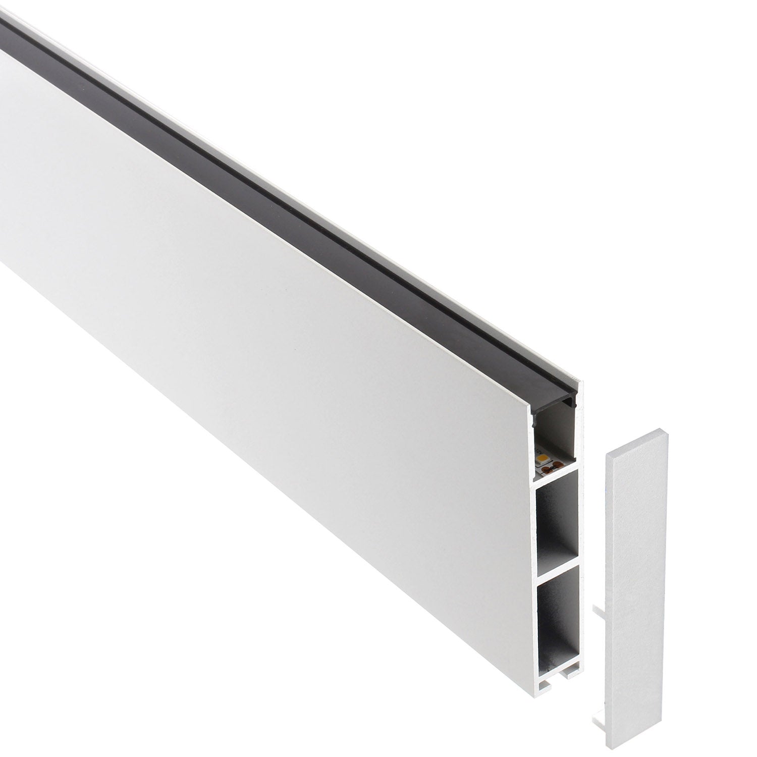 Perfil de aluminio lacado en color blanco mate de 1 metro de longitud para instalaciones profesionales. Con el nuevo perfil PHANTER se consiguen impresionantes composiciones en iluminación suspendida que realzan cualquier espacio.