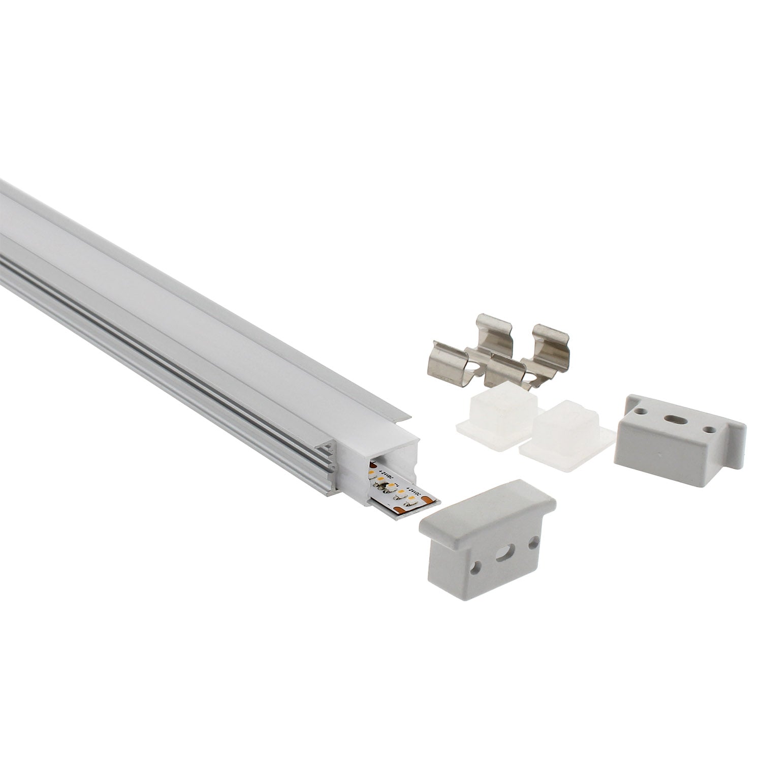 Incluye perfil de aluminio anodizado de 1 metro de longitud. pletina disipadora, tubo de policarbonato, tapones de silicona y tapas finales. Con protección IP67