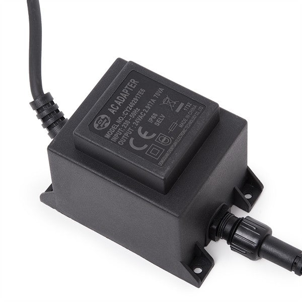 El Transformador 70W 230VAC/24VAC IP68 Sumergible es ideal para conexiones de LED de mayor potencia.Posee una tensión de entrada de 230V y salida de 24V.Su función es asegurar que el LED no recibirá picos de tensión y/o corriente gracias a los componentes con los que está construida.