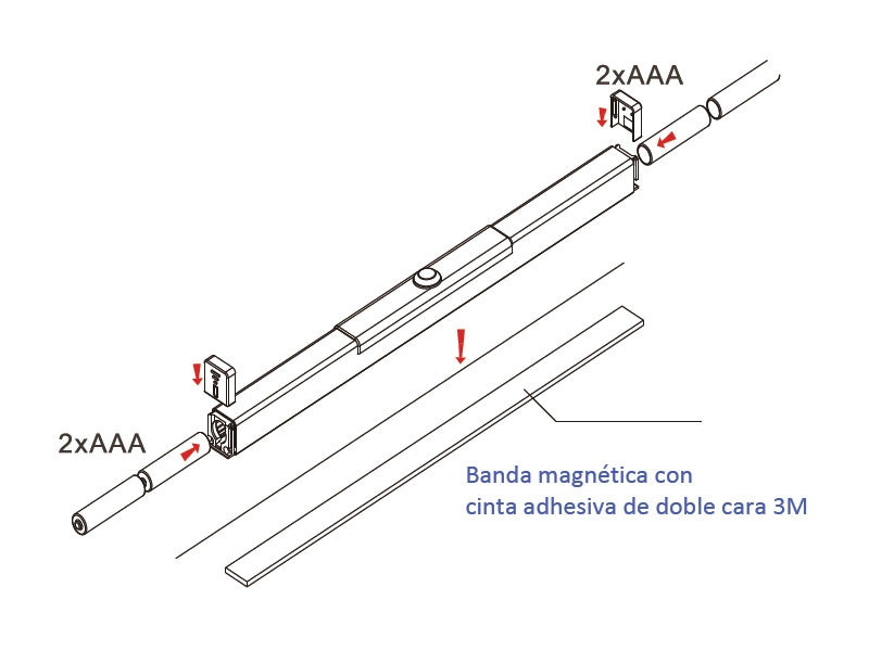 Incluye barra led con alimentación con 4 pilas AAA (no incluidas) con sensor IR y banda magnética con adhesivo 3M.