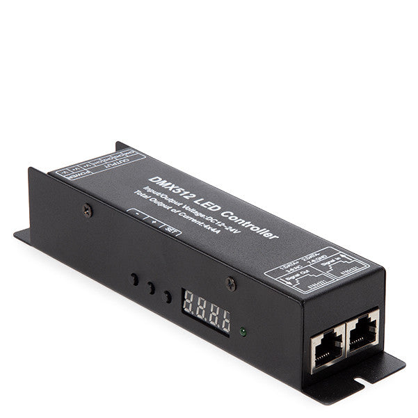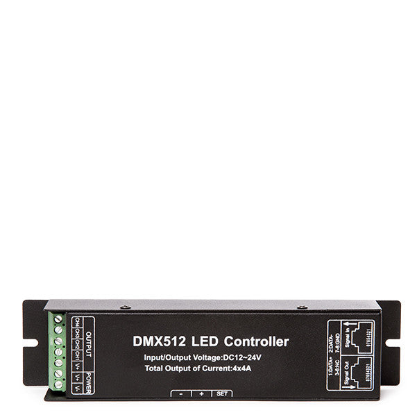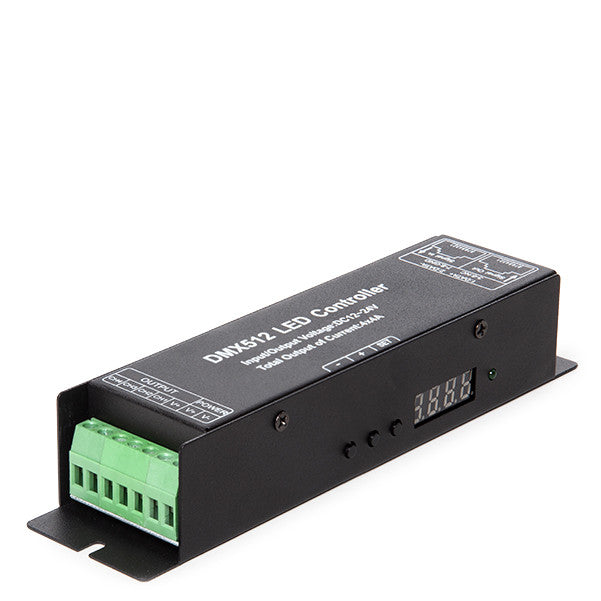 El decodificador DMX512 posee un Sistema avanzado de control, puede recibir la señal estándar de control digital DMX512 que es muy utilizada en todo el mundo. Cambia la señal de entrada en una señal de control mediante PWM (modulación por ancho de pulso) adecuada para las luces LED. Puede también conectarse a una consola digital DMX para controlar y cambiar cualquier efecto dinámico que se desee. Además, cuando el decodificador no está conectado a una consola DMX, puede ser utilizado como un controlador. Es decir, se puede sincronizar con varios decodificadores y luces LED.