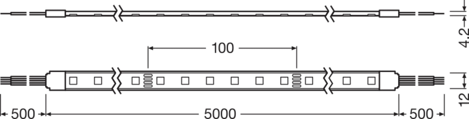 Tiras LED RGB con protección IP65 y 500 lm/m para aplicaciones generales. Características del producto: Regleta LED flexible y divisible con LED RGB multichip en línea. Unidad de corte más pequeña: 100 mm. Vida útil (L70 / B50): hasta 40,000 h a Tc máx .: 75°C. Tipo de protección: IP65. Resistente a las nieblas salinas. Altamente resistente a la radiación UV. Regulable por modulación de impulso ancho (PWM). Beneficios del producto: Gran variedad de opciones de diseño gracias a las tiras LED RGB largas y flexibles. Cambio de colores homogéneo. Instalación sencilla, no se necesitan herramientas para la conexión. Montaje sencillo en numerosas superficies lisas gracias a la cinta autoadhesiva. Máxima flexibilidad gracias a la gran cantidad de accesorios. Conexión sencilla, gracias a los cables integrados a ambos lados. Áreas de aplicación: Apto para aplicaciones de interior y de zonas exteriores (IP64). Iluminación de acento en fachadas. Iluminación de efecto en arquitectura. Efectos dinámicos en zonas públicas. Iluminación de bóvedas. Iluminación debajo de los armarios. Hoteles y oficinas. Interiores residenciales.