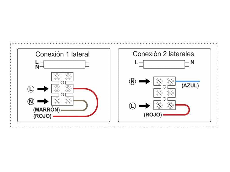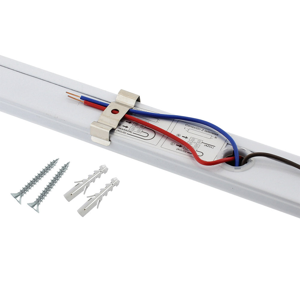 Regleta con conectores T8 para instalar fácilmente 1 tubo LED de 120cm. Fácil configuración e instalación. Preparado para instalar tubos led con conexión  a 1 ó 2 laterales.