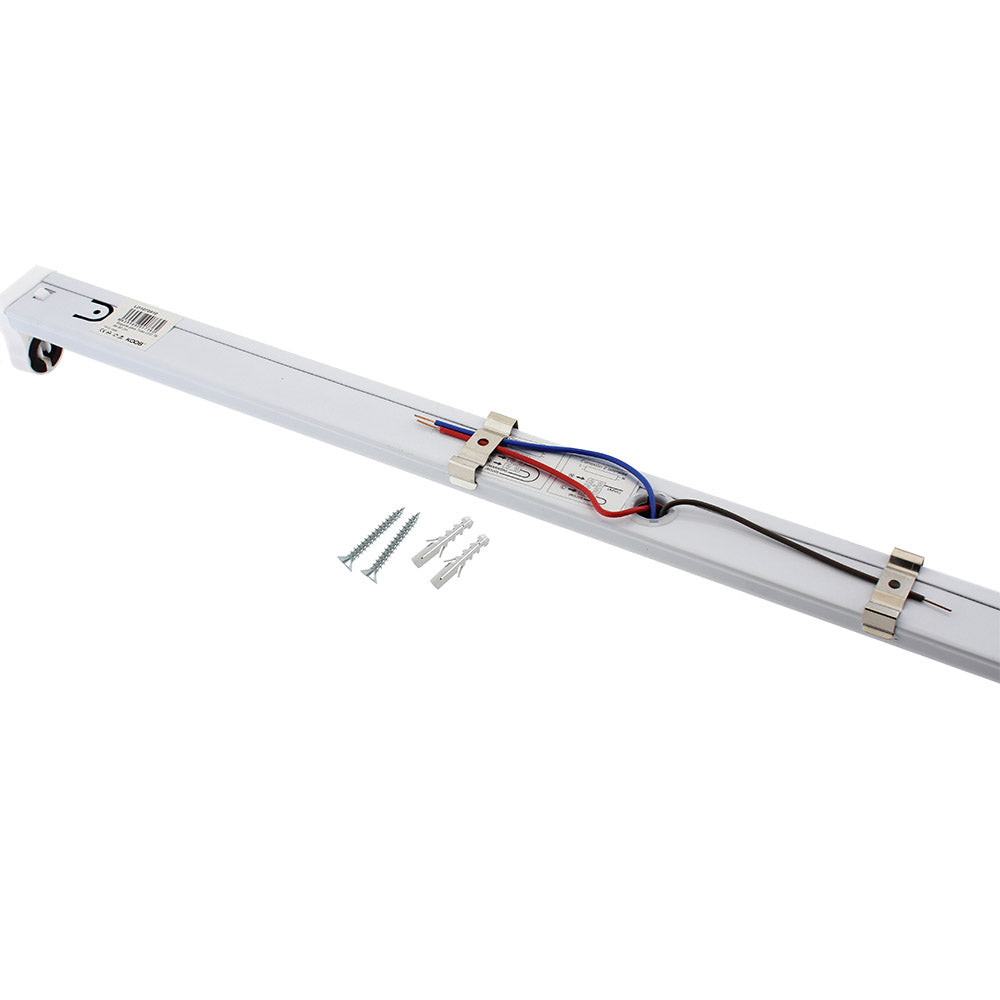 Regleta con conectores T8 para instalar fácilmente 1 tubo LED de 120cm. Fácil configuración e instalación. Preparado para instalar tubos led con conexión a 1 ó 2 laterales.