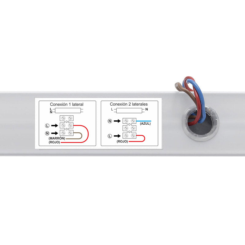 Regleta con conectores T8 para instalar fácilmente 1 tubo LED de 150cm. Fácil configuración e instalación. Preparado para instalar tubos led con conexión  a 1 ó 2 laterales.