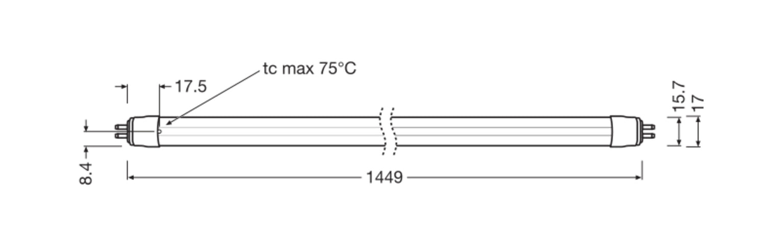 TUBO LED T5 EXTERNO para DRIVER LED EXTERNO. Características del producto: Diseñado para funcionar solo con LED DRIVER LED TUBE EXTERNAL DALI. Tubo de lámpara de vidrio con protección contra astillas. Beneficios del producto: Protección contra roturas gracias al revestimiento especial de PET. No se dobla gracias al tubo de cristal. Resistencia frente a cargas de conmutación muy elevada. 5 años de garantía. Áreas de aplicación: Iluminación industrial (e.j: plantas de manufactura, centros logísticos, almacenes). Iluminación en línea para oficinas, educación, áreas de almacenamiento y venta minorista.. Comercios, supermercados. Apto para instalaciones de interiores SELV. Iluminación general a temperatura ambiente entre -20…+50 °C.