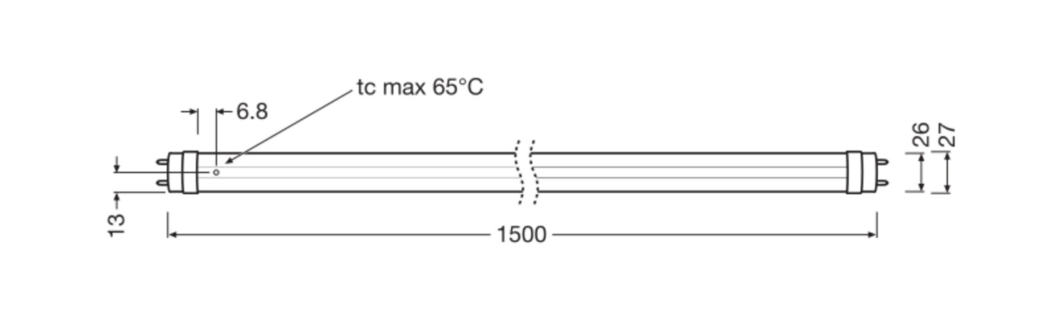 TUBO LED T8 EXTERNO para DRIVER LED EXTERNO. Características del producto: Diseñado para funcionar solo con LED DRIVER LED TUBE EXTERNAL DALI. Tubo de lámpara de vidrio con protección contra astillas. Beneficios del producto: Protección contra roturas gracias al revestimiento especial de PET. No se dobla gracias al tubo de cristal. Resistencia frente a cargas de conmutación muy elevada. 5 años de garantía. Áreas de aplicación: Iluminación industrial (e.j: plantas de manufactura, centros logísticos, almacenes). Iluminación en línea para oficinas, educación, áreas de almacenamiento y venta minorista.. Comercios, supermercados. Apto para instalaciones de interiores SELV. Iluminación general a temperatura ambiente entre -20…+50 °C.