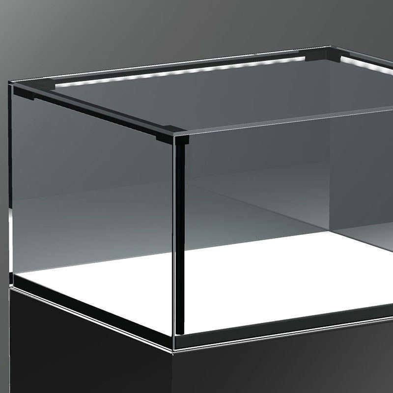 Las luminarias LED es la mejor opción para la iluminación de vitrinas, mostradores y muebles de exhibición de productos. Ocupan poco espacio, generan poco calor y no emiten luz ultravioleta o infrarroja, por lo que no afecta al producto que se está exhibiendo. Su ahorro en electricidad es más del 90% respecto a sus homólogos halógenos. Hoy en día son ampliamente usados en joyerías, relojerías, tiendas retail de teléfonos móviles, tiendas de accesorios, etc.