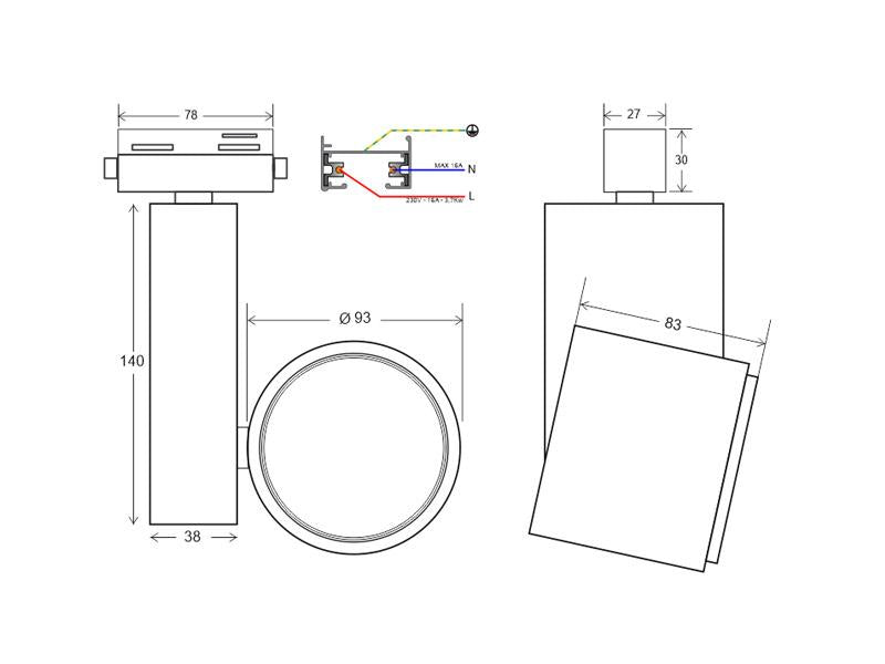- Incluye conector para carril monofásico (dos hilos). (Opcionalmente puede adaptarse conector para carril bifásico - 3hilos, o carril trifásico - 4 hilos, solicita información)