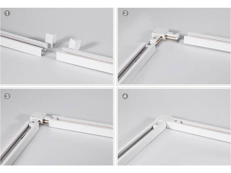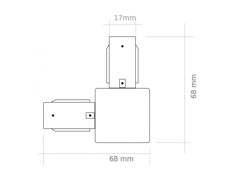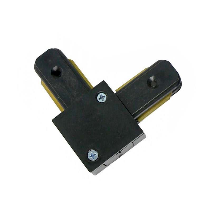 Conector de 90 grados para unir y alimentar electricamente dos tramos de carril monofásico.