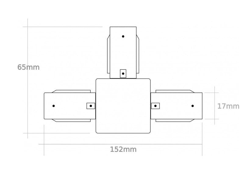 Conector para unir en forma de T carriles. Color negro. De fácil instalación
