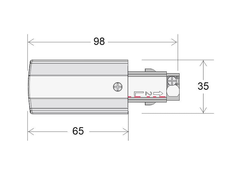 Conector de alimentación eléctrica para el extremo derecho del carril.