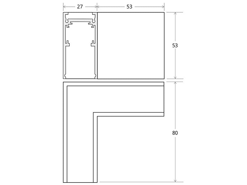 Pieza en forma de L para conectar dos tramos de carril magnético superficie.