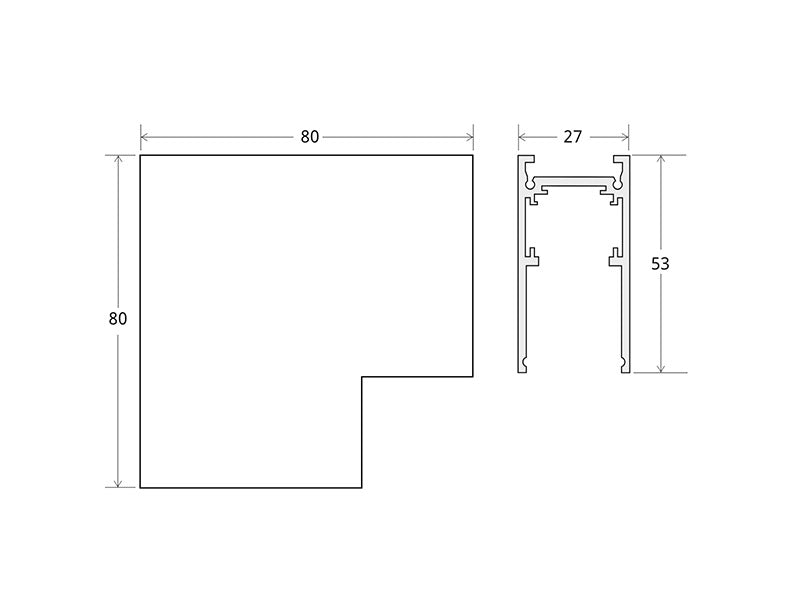Pieza en forma de L  vertical para conectar dos tramos de carril magnético superficie.