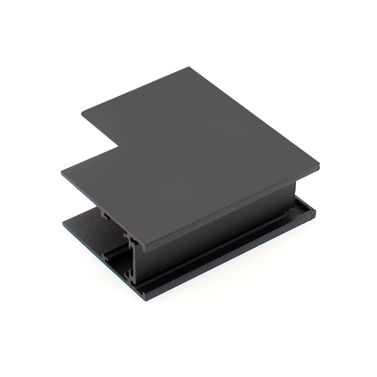 Pieza en forma de L vertical para conectar dos tramos de carril magnético superficie.