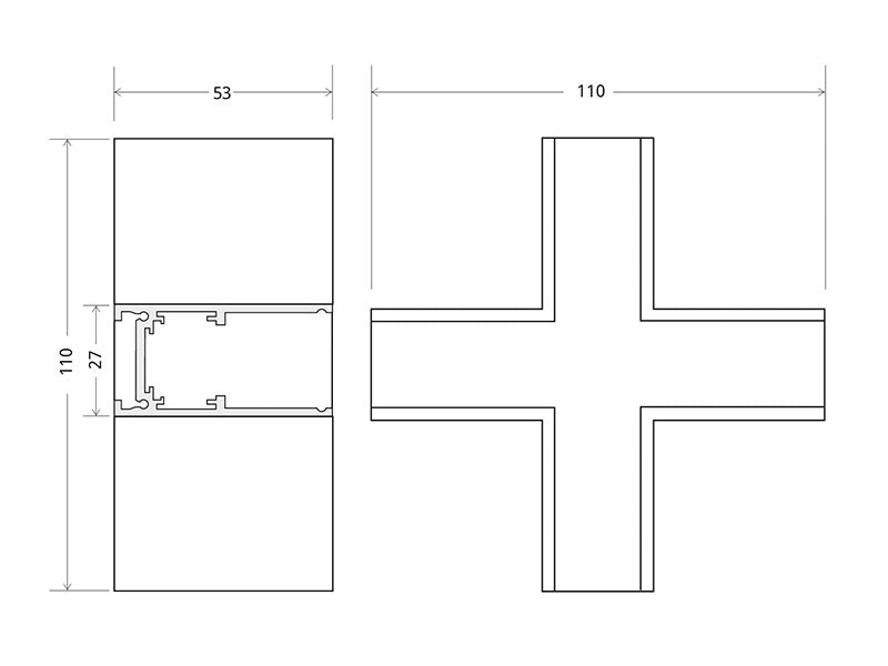 Pieza en forma de X para conectar dos tramos de carril magnético superficie.