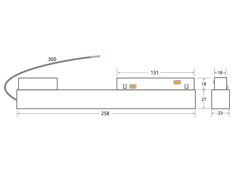 Fuente de alimentación interna con cable para alimentar el carril magnético.