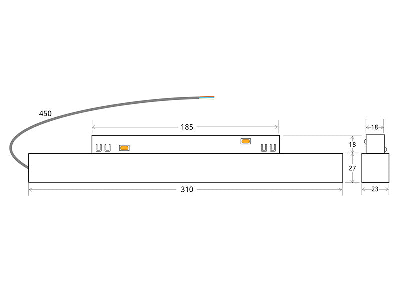 Fuente de alimentación interna con cable para alimentar el carril magnético.