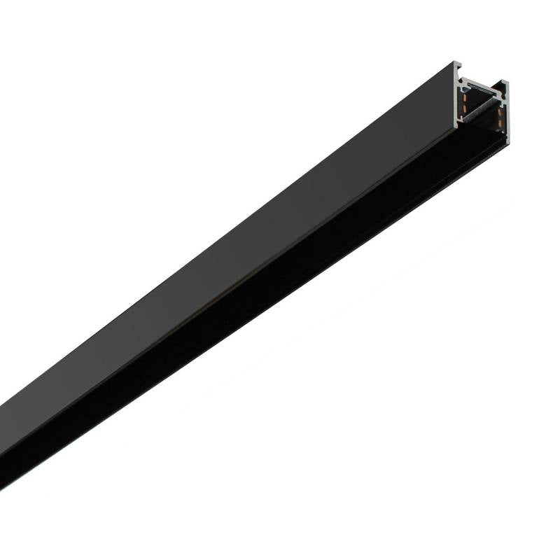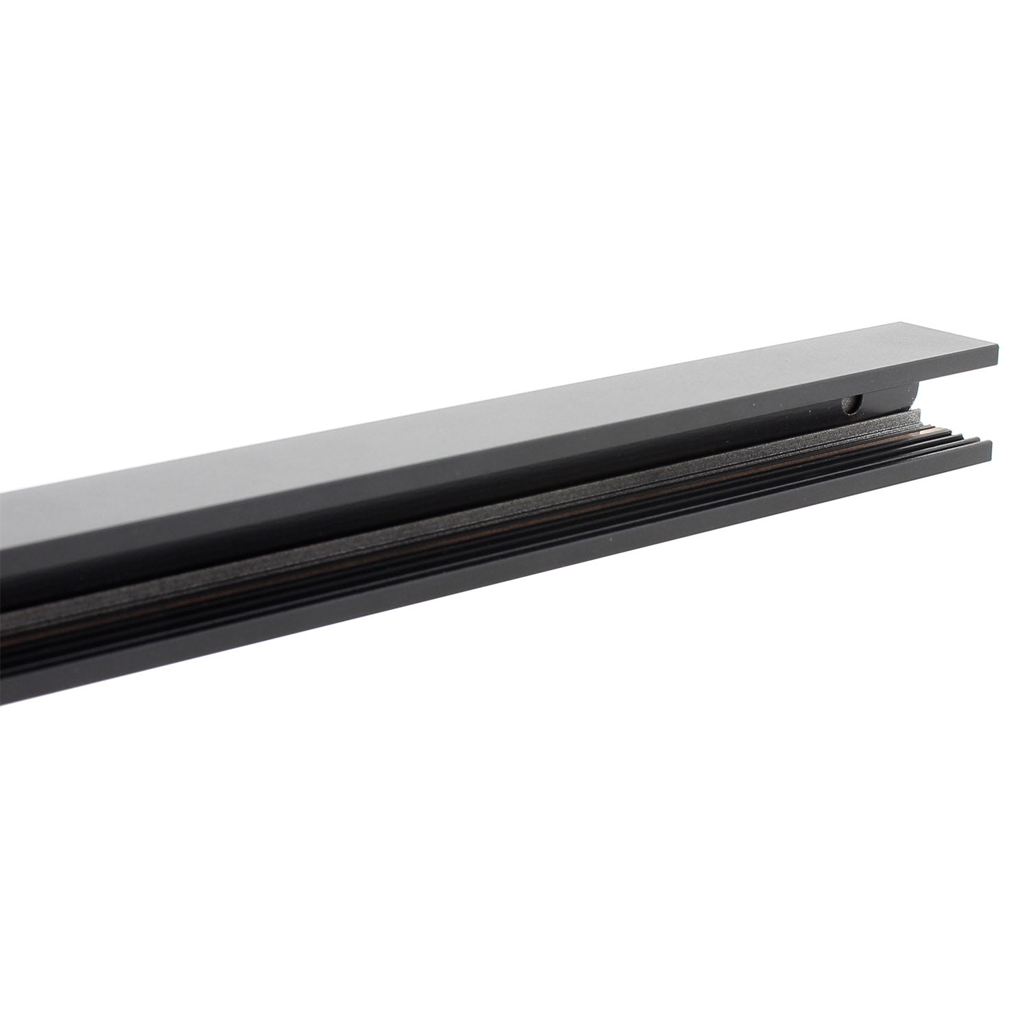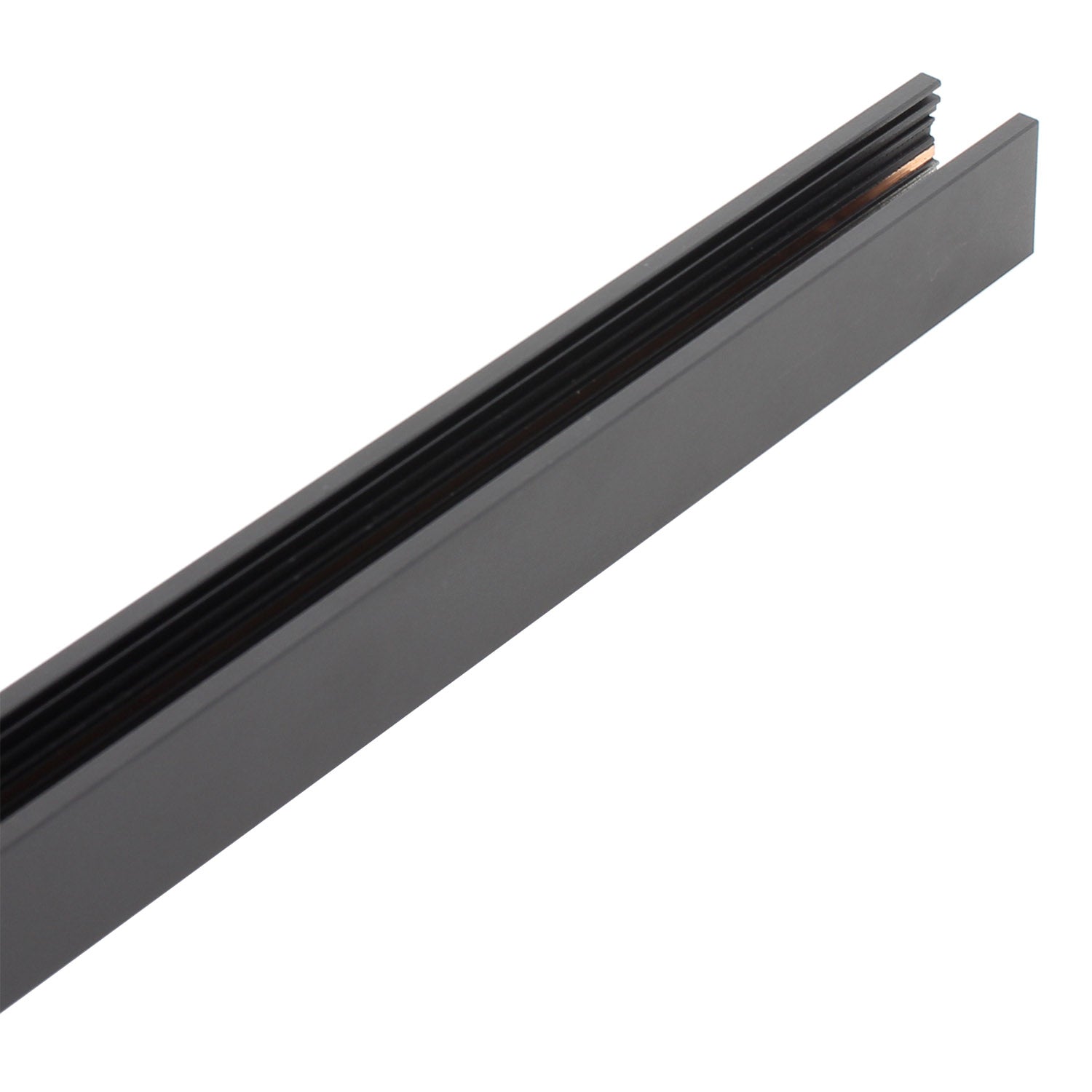 Carril magnético slim de 1 metro de longitud de color negro para fijar en superficie o suspendido. Incorpora banda magnética y pistas eléctricas para conectar las luminarias MAGNETIC de forma rápida y fácil.