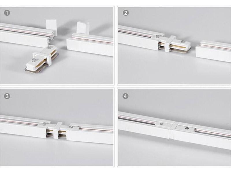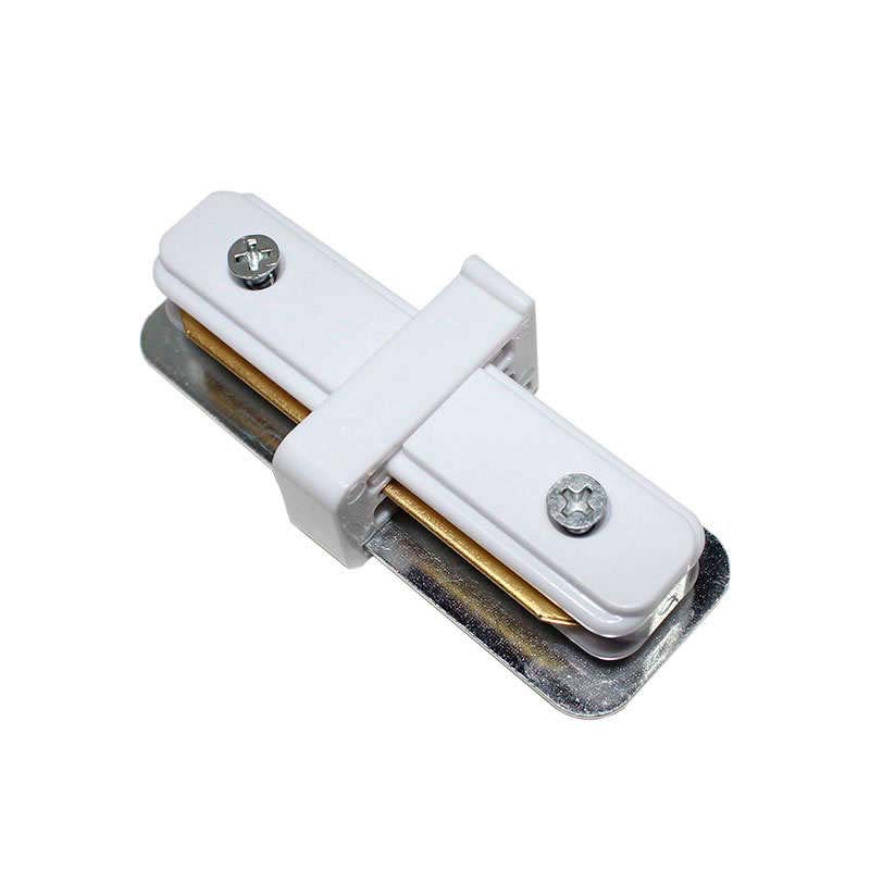 Conector para unir carriles monofásicos. Color blanco. De fácil instalación