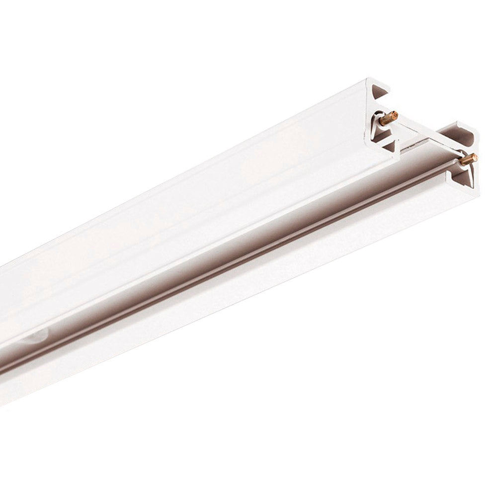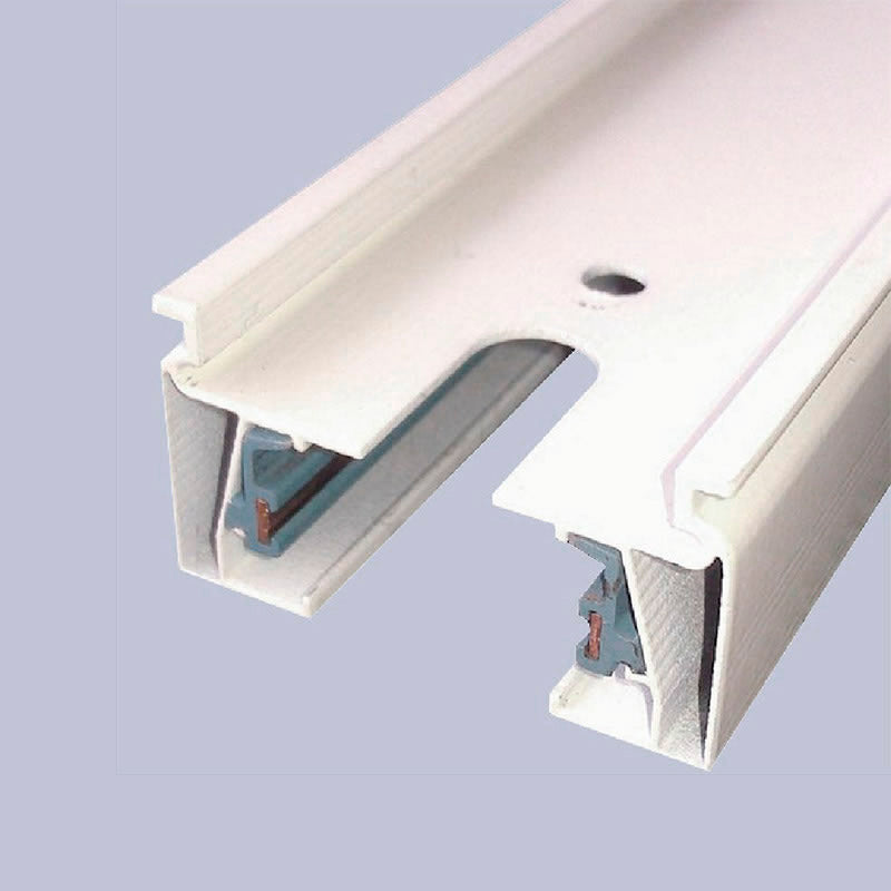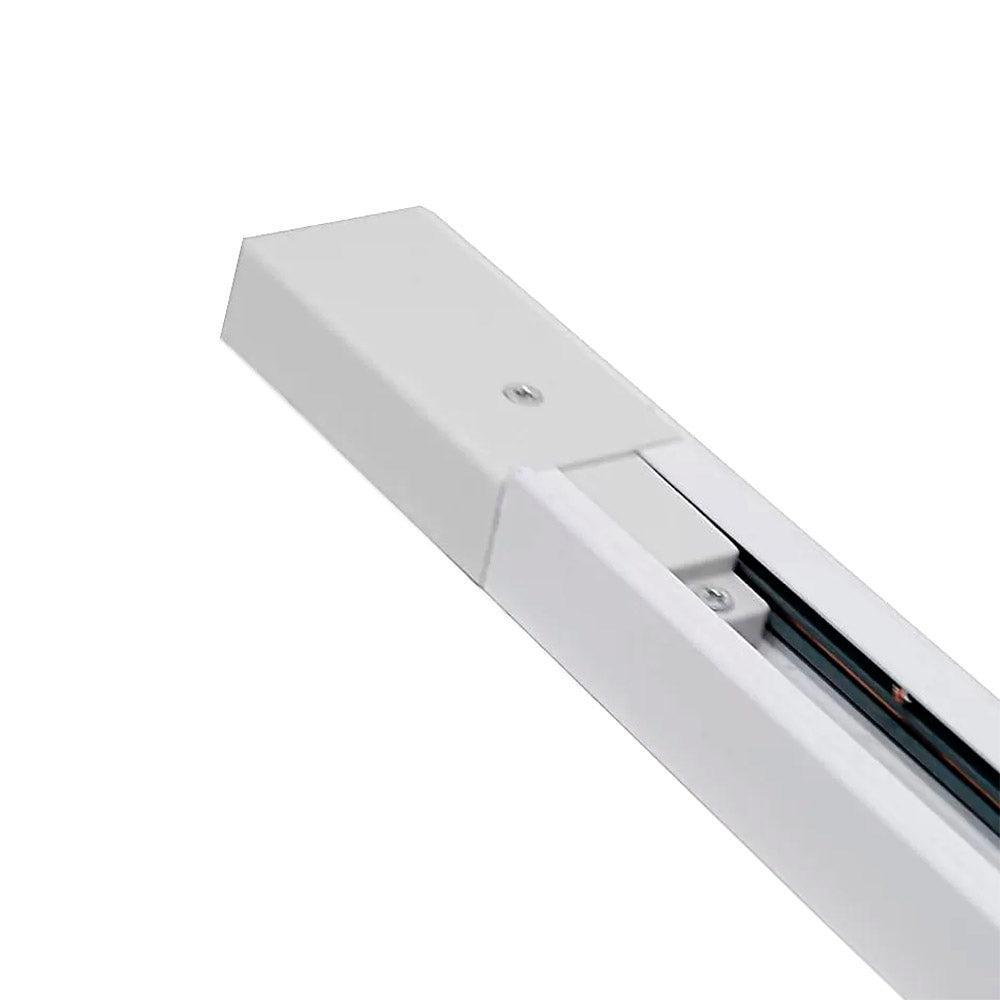 Carril en color blanco. Fácilmente ampliable con otros carriles y con otros accesorios para realizar formas lineales o en cuadrícula. Incluye carril monofásico, conector a red y tapa final.