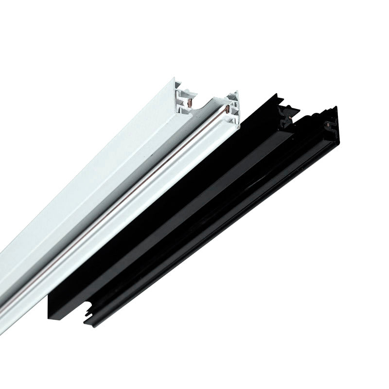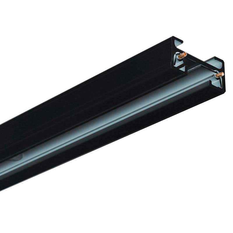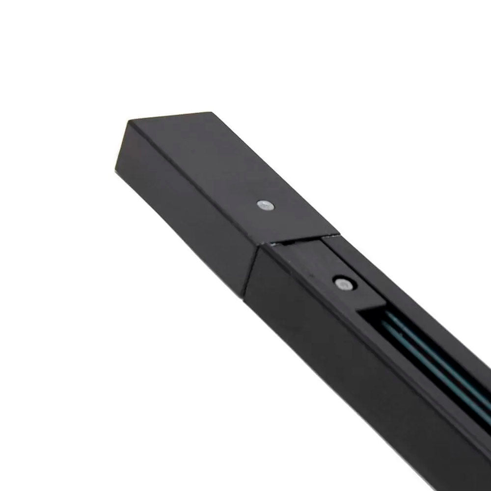 Carril en color negro. Fácilmente ampliable con otros carriles y con otros accesorios para realizar formas lineales o en cuadrícula. Incluye carril monofásico, conector a red y tapa final.